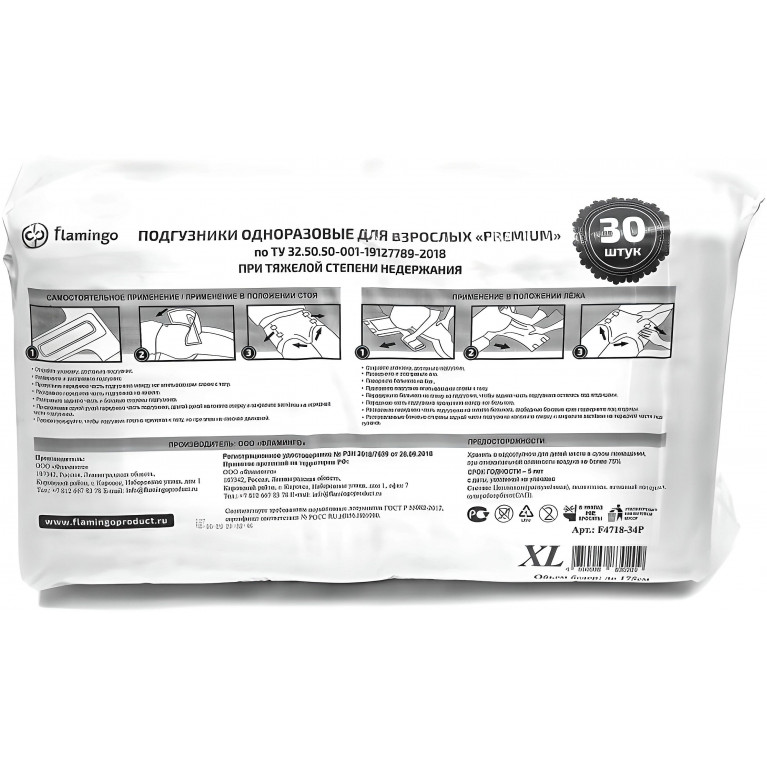 Водонепроницаемые подгузники для взрослых Flamingo моментально впитывают влагу, обеспечивают надежную защиту до 12 часов без протеканий.