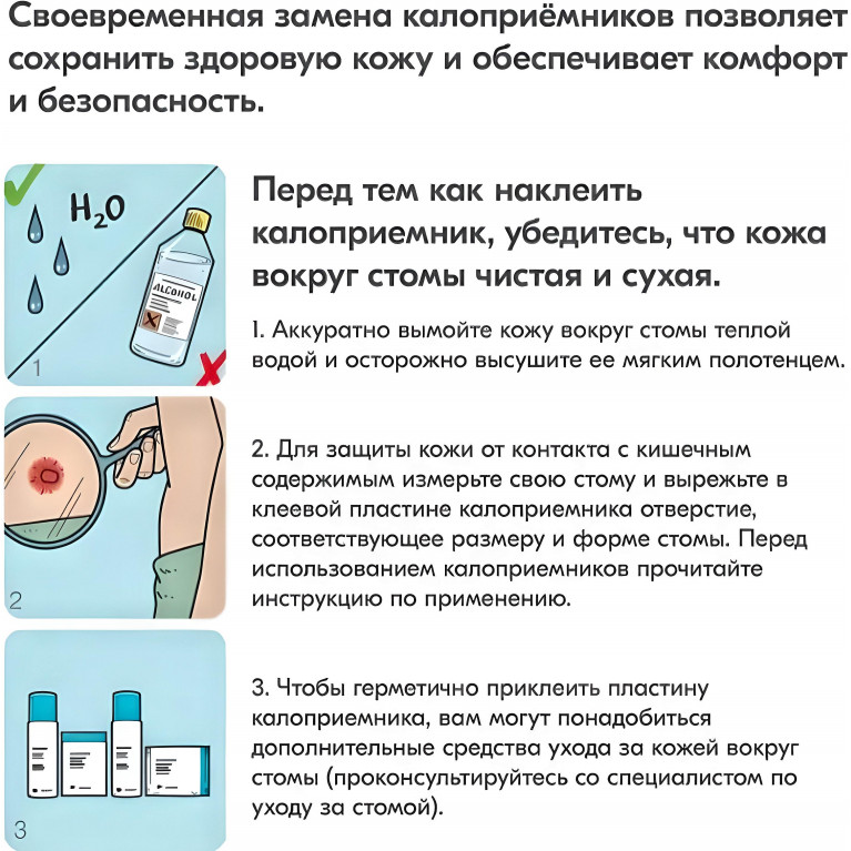 Перед приклеиванием пластины кожа вокруг стомы должна быть чистая и сухая.