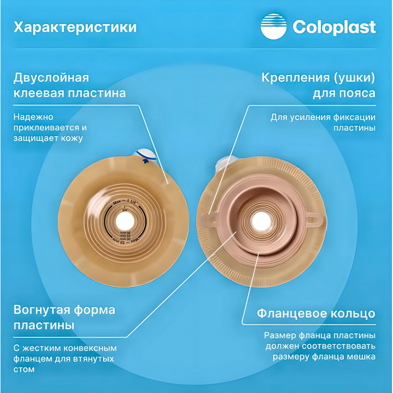 Конвексный фланец выполнен таким образом, что оказывает небольшое давление на перистомальную область, как бы, выталкивая стому наружу.