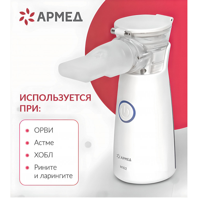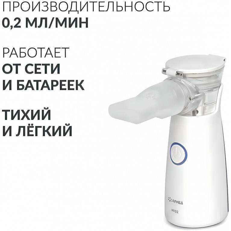 Армед МЭШ-Небулайзер (ингалятор) ультразвуковой М102 - портативный прибор для всей семьи, позволяющий проводить лечебные ингаляции где и когда удобно.