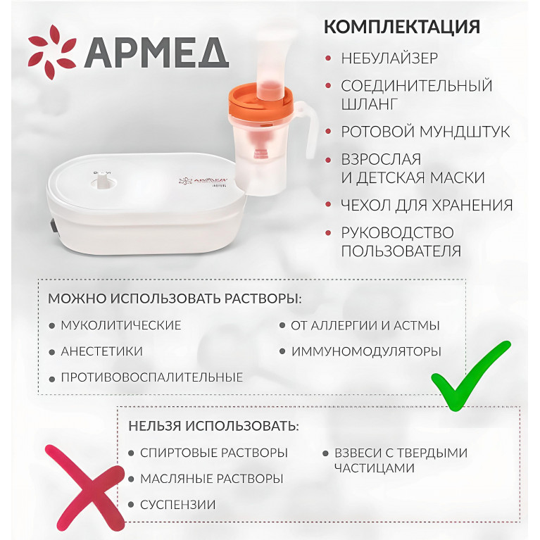Армед Небулайзер (ингалятор) 405B - компактный компрессорный ингалятор для лечения заболеваний дыхательной системы дома и в медучреждениях.