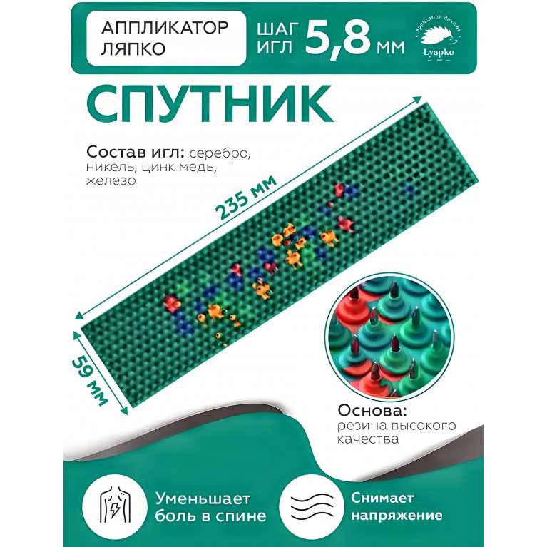 Аппликатор Ляпко Спутник 5.8 подходит для снятия болей и спазмов в зонах тела с небольшим радиусом кривизны.
