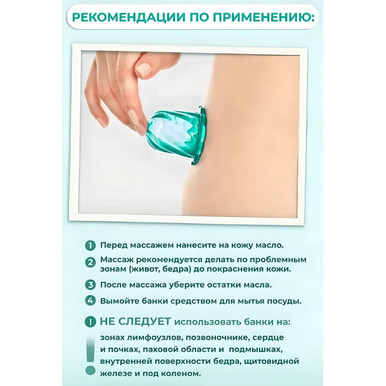 Для эффективного использования вакуумной банки Тюльпан , кожу рекомендуется смазать массажным маслом или кремом, затем установить банки дозируя силу вакуума их сжатием.