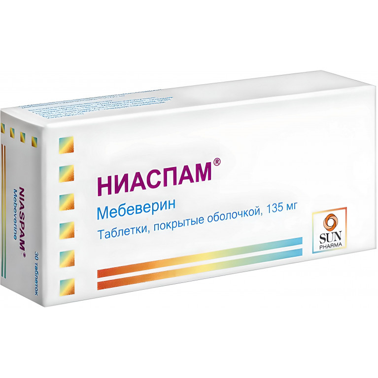 Препарат Ниаспам® содержит действующее вещество мебеверин, относящееся к группе спазмолитических лекарственных средств.