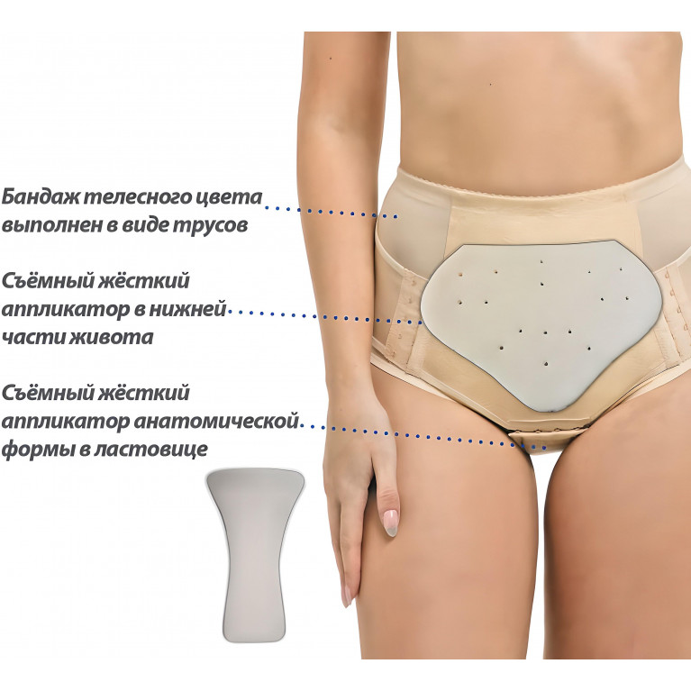 Бандаж телесного цвета выполнен в виде обычных трусов, поэтому практически незаметен под любой одеждой