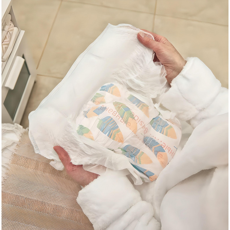 Боковые швы разрываются легко, позволяя быстро менять трусики.