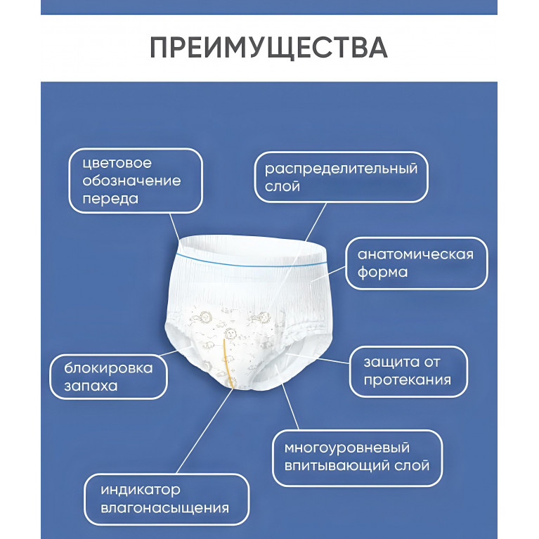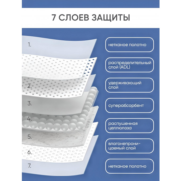 7 слоев защиты обеспечивают повышенную впитываемость и нейтрализацию неприятного запаха.