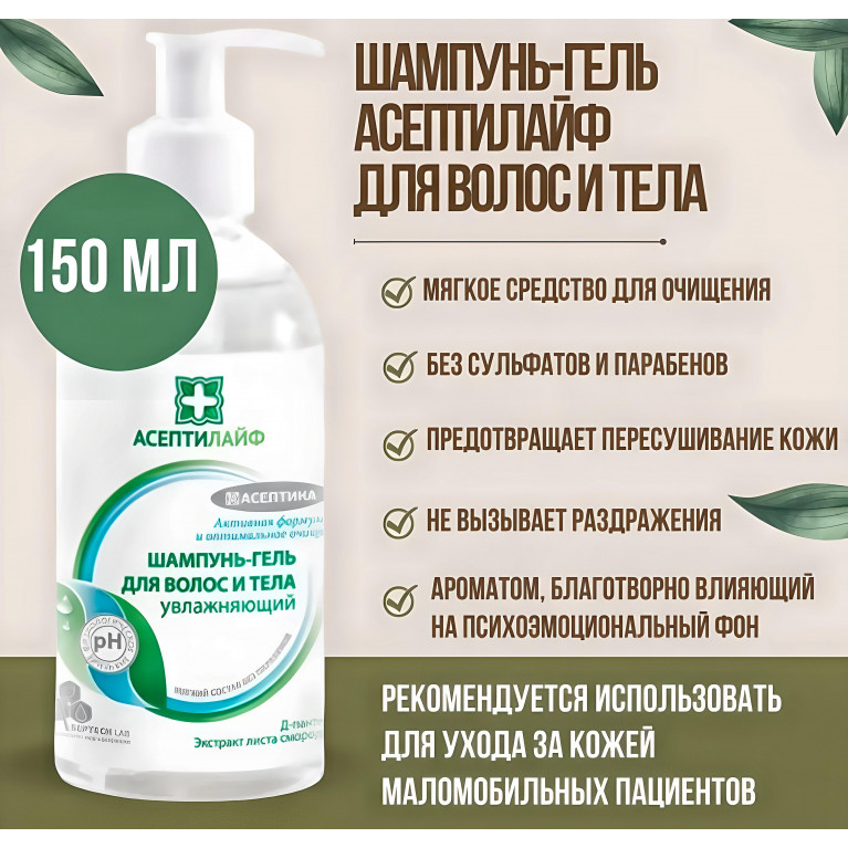 Шампунь-гель для волос и тела увлажняющий АСЕПТИЛАЙФ из профессиональной серии уходовой косметики максимально мягко и эффективно очищает кожу и волосы.