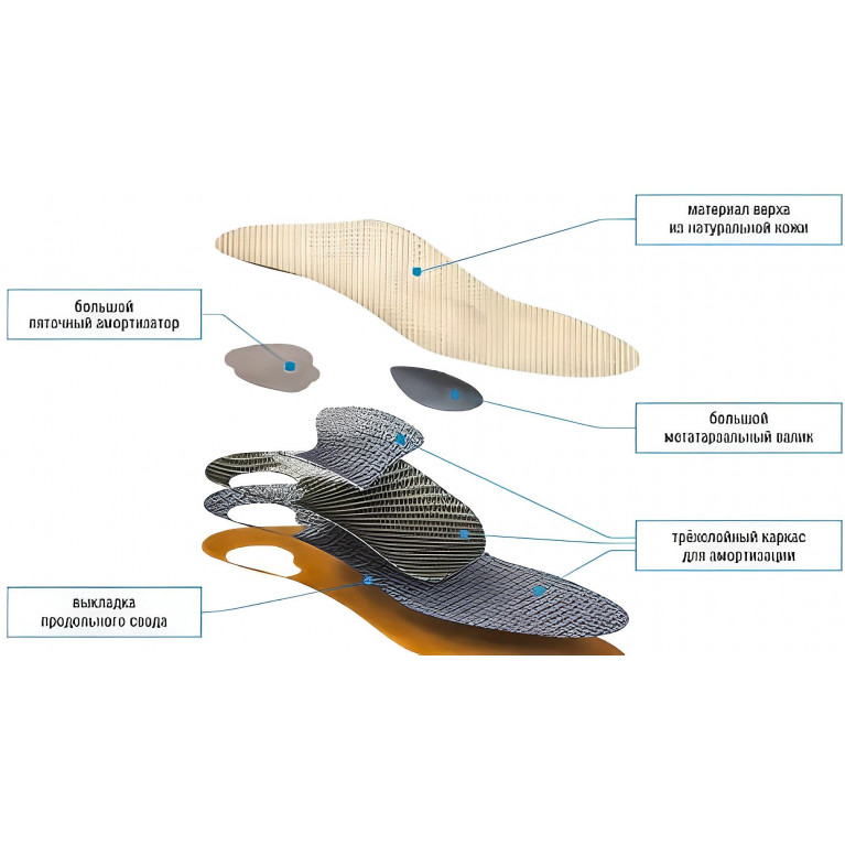 • особый 3х-слойный каркас и крупный пяточный амортизатор создают оптимальную амортизацию и поддержку, что важно людям с заболеваниями суставов нижних конечностей и при увеличенном весе
