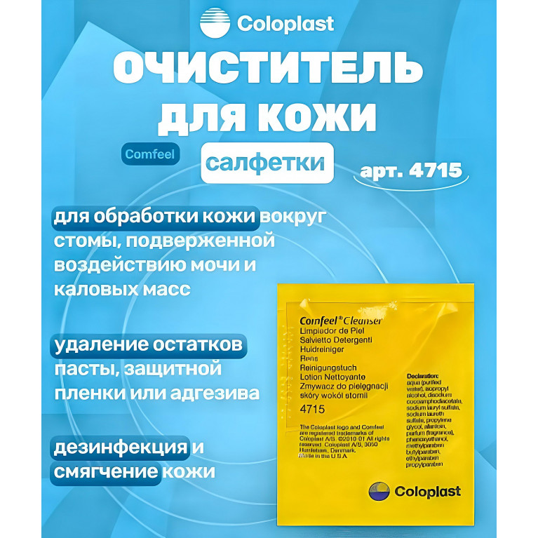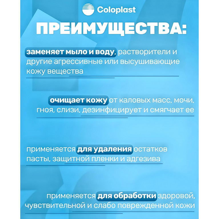 Очиститель для кожи в салфетках Coloplast эффективно заменяет воду и мыло, разные растворители и очистители,