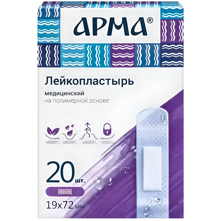 Лейкопластырь медицинский на полимерной основе арма прозрачный 19х72 мм предназначен для для защиты поверхностных повреждений кожи (порезов, проколов, царапин и т.п.) от попадания загрязнений извне и от дополнительного травмирования.