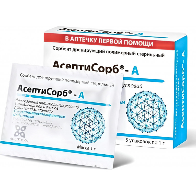 АсептиСорб® - А обладает сбалансированным дренирующим, противоотечным, противовоспалительным, гемостатическим действием (капиллярное кровотечение), обеспечивает нормальный парообмен в ране, стимулирует микроциркуляцию, благотворно влияет на регенераторные процессы в ране.