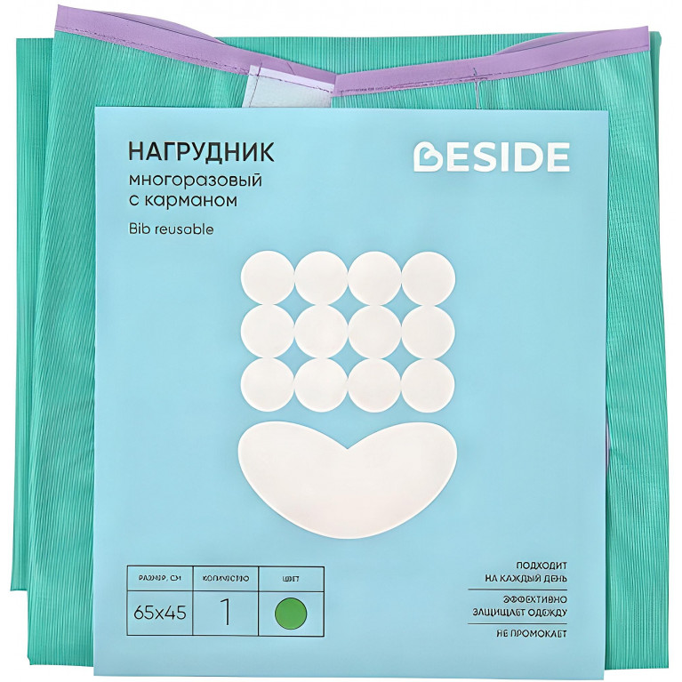 Инструкция по применению BESIDE Нагрудник многораз. д/взрослых с карманом 45х65 см зелёный (25964) №1 Ханчжоу Квинье Импорт и Экспорт (Китай) цена
