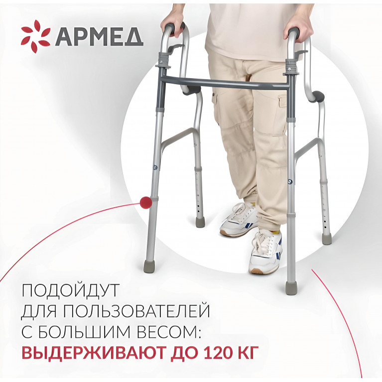 Ходунки KR9632L Armed складные, двухуровневые, используются для обеспечения перемещения или восстановления двигательных функций возрастных пациентов, при заболеваниях опорно-двигательного аппарата, после операций, инсульта и т.д.