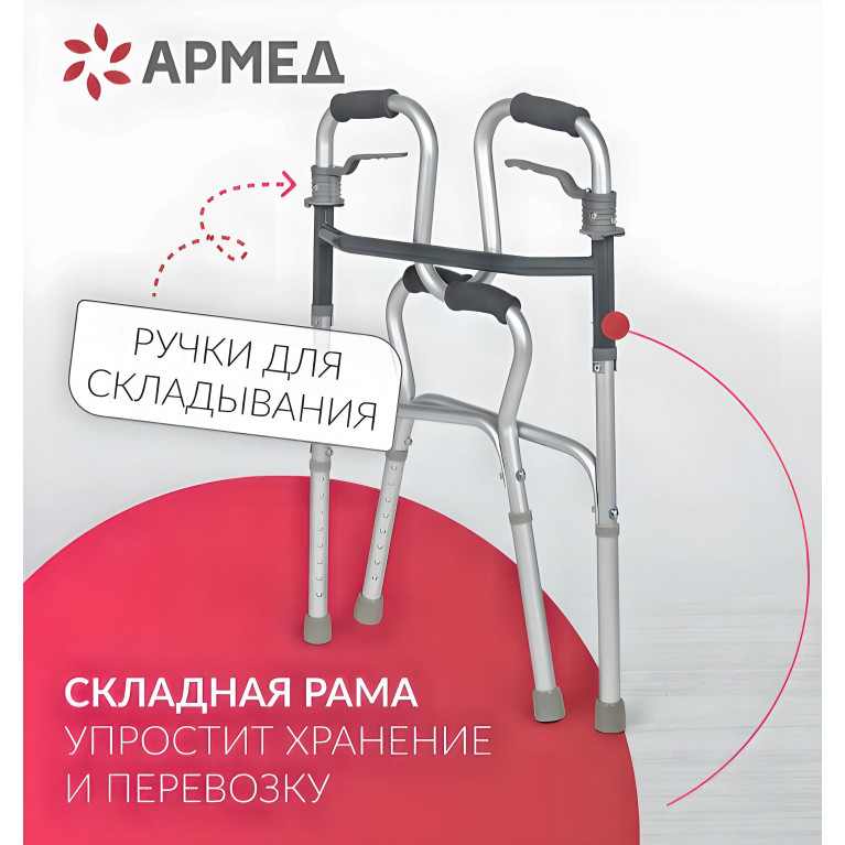 Рама ходунков складная, что обеспечивает удобство при хранении и транспортировке.