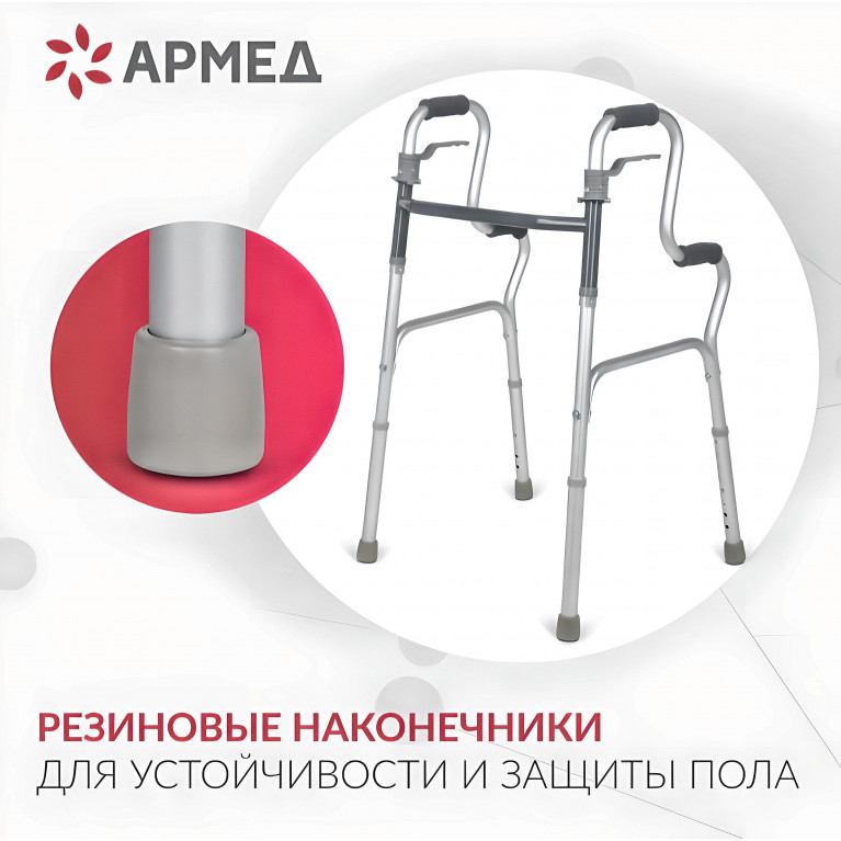 Благодаря резиновым накладкам на ножках ходунки устойчивы даже на скользких поверхностях, а также не царапают подлежащие напольные покрытия.
