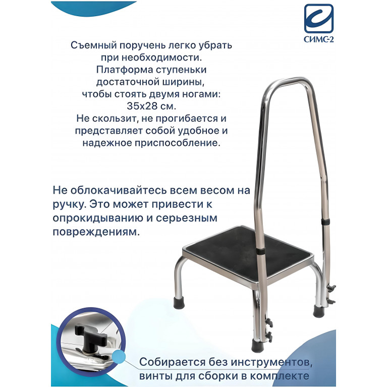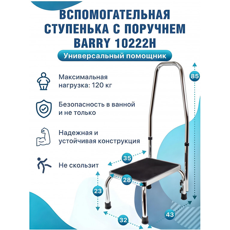 Вспомогательная ступенька с поручнем 10222H - реабилитационное устройство, предназначенное для удобного проведения гигиенических процедур людям с ограниченными возможностями.