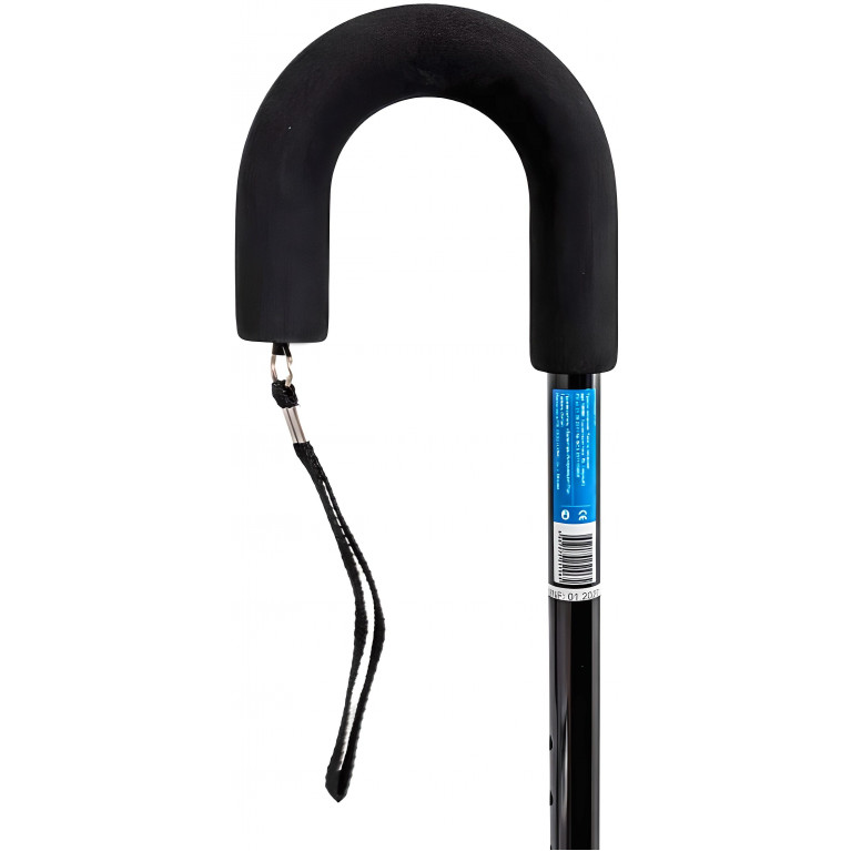 Мягкая и приятная на ощупь насадка на скругленной рукоятке и страховочный ремень предотвращают выскальзывание трости из руки.