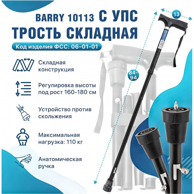 Трость Barry 10113 - складная модель для людей, которым не нужна постоянная опора.