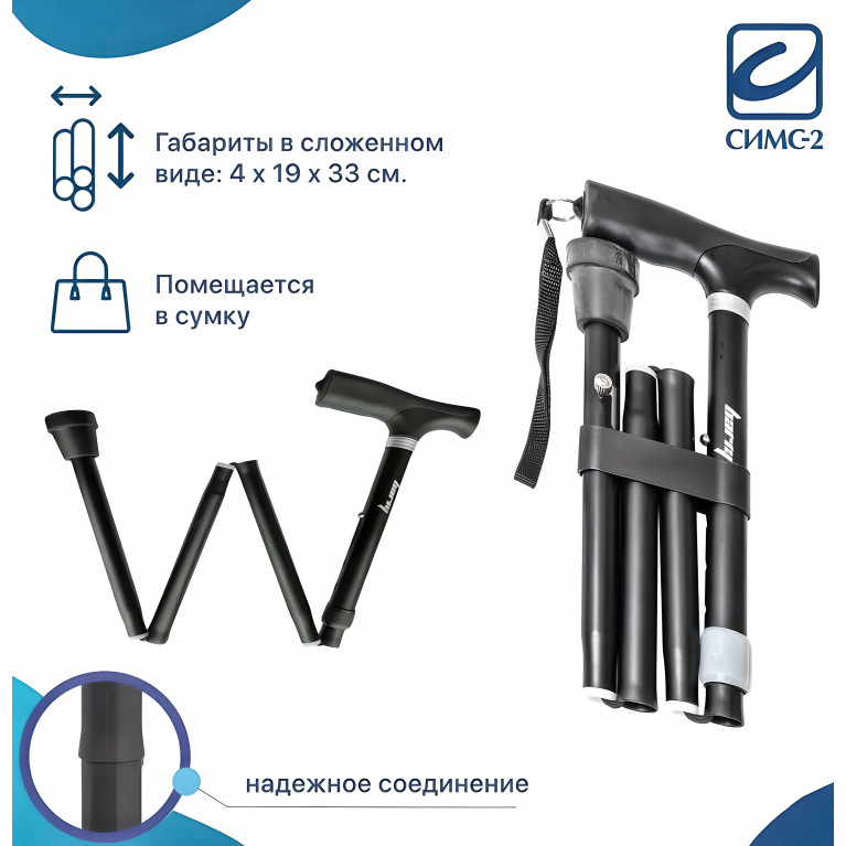 Трость легко складывается до компактных размеров и может поместиться в сумке.