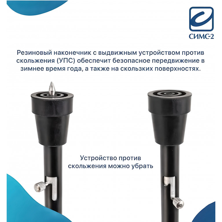 Трость для ходьбы имеет выдвижное устройство против скольжения (УПС), которое помогает сохранить равновесие даже зимой на скользкой дороге.