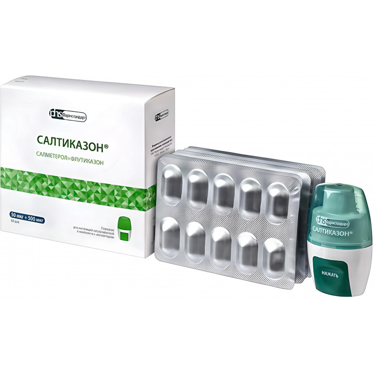 Инструкция по применению Салтиказон капсулы с порошком для ингаляций дозированный 50 мкг+500 мкг 60 доз в комплекте с устройством для ингаляций Фармстандарт -УфаВита ОАО (Россия) цена