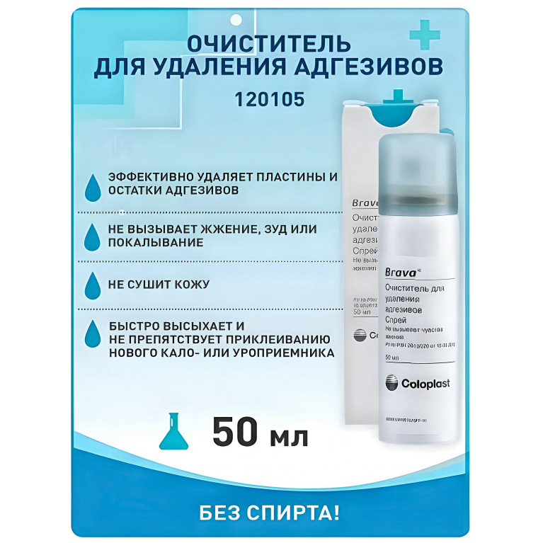 очиститель для удаления адгезивов Колопласт Брава предназначается для лёгкого,