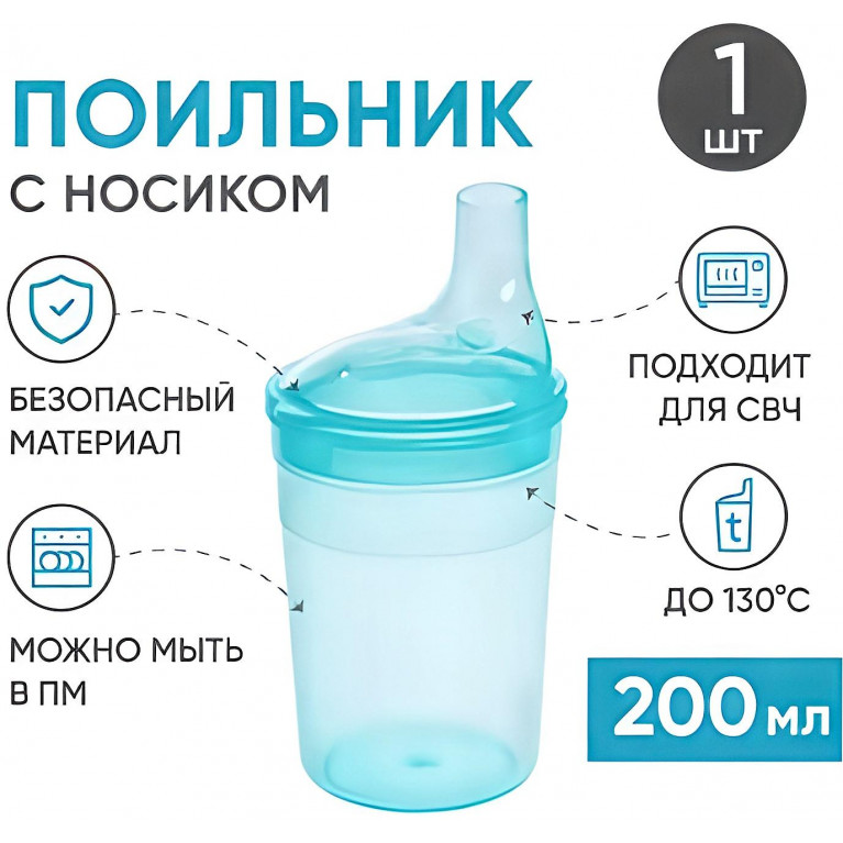 Для стакана поильника использован безопасный многоразовый пластик- пищевой полиэтилен (полипропилен)