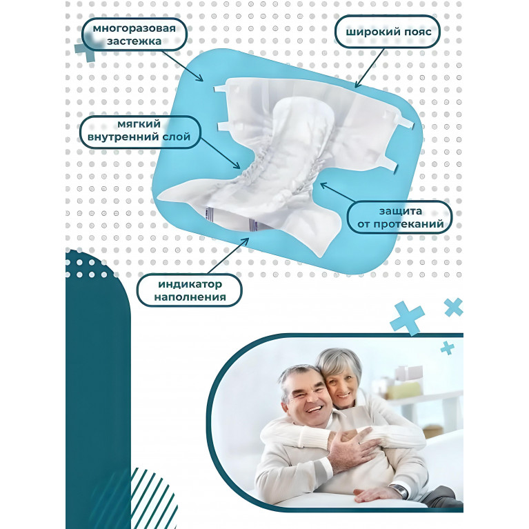- Защитный слой (внутренняя поверхность подгузников изготовлена из гипоаллергенного нетканого материала,